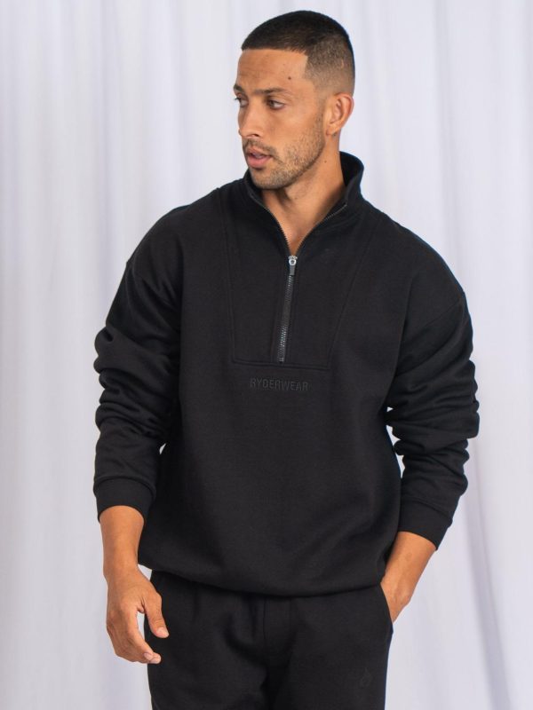 Men Unisex Half Zip Jumper Black | Ryderwear Tops