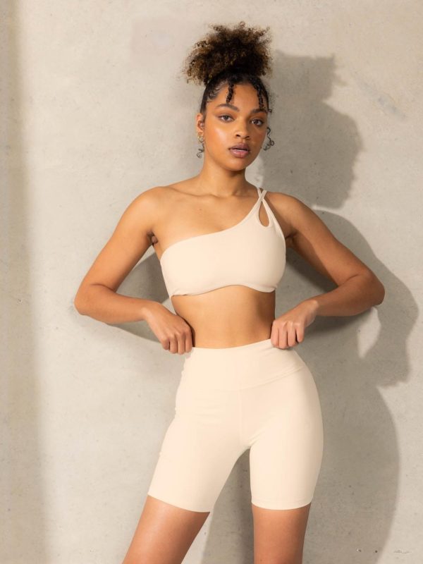 Women Empower One Shoulder Sports Bra Vanilla | Ryderwear Sports Bras