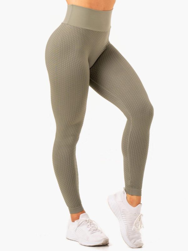 Women Honeycomb Scrunch Seamless Leggings Khaki | Ryderwear Leggings