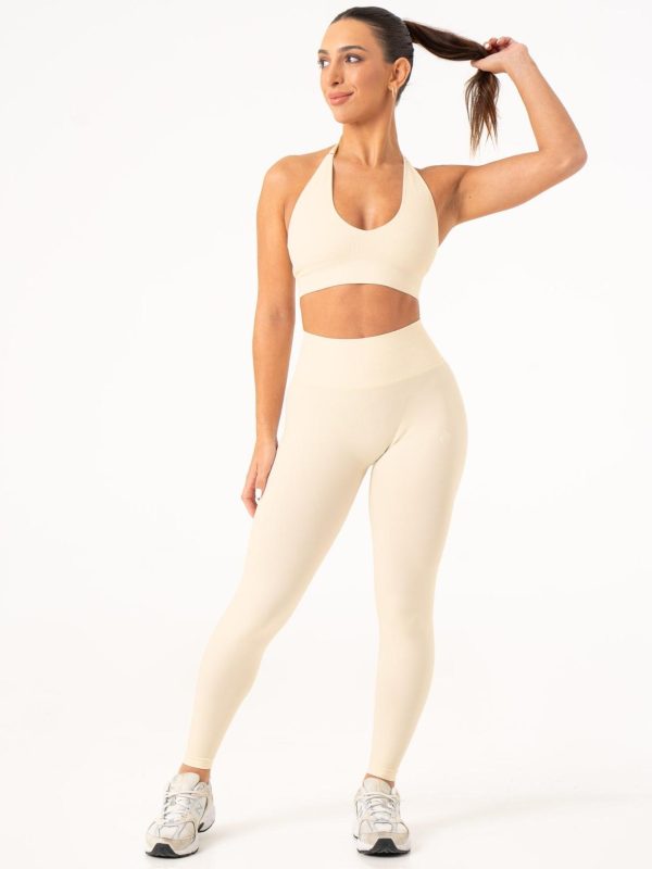 Women Lift Rib Seamless Halter Sports Bra Vanilla | Ryderwear Sports Bras