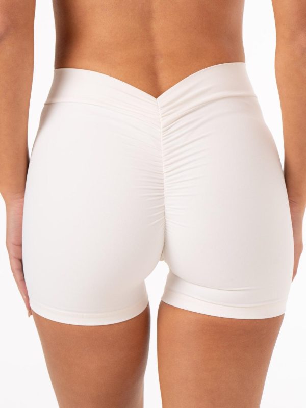 - Foldover waistband that sits high at front and forms a low V-shape at back